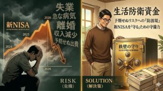 【資産】生活防衛マネー 「投資」の前に「守り」を固めよ。新NISA時代の盲点、生活防衛資金の『実戦的』な貯め方 新NISAで投資を始める前に、40代男性が最優先すべき「生活防衛資金」の重要性を生活防衛コンサルタントが解説。暴落時でも家族を守り、投資を継続するための『実戦的』な貯め方と金額の目安を紹介します。資産形成の土台を固めて、一生モノの安心を。 2026.04.23 【資産】生活防衛マネー