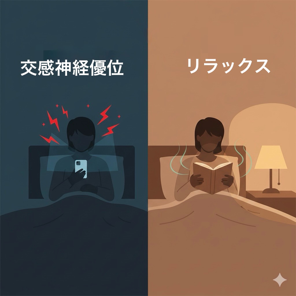 - 寝室の明るさ:「真の暗闇」か「微かな間接照明」のみに。