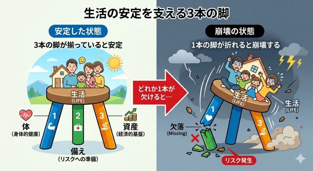 それは、「体」「備え」「資産」のどれか一つが欠けても、本当の意味での安心は手に入らないということです。
