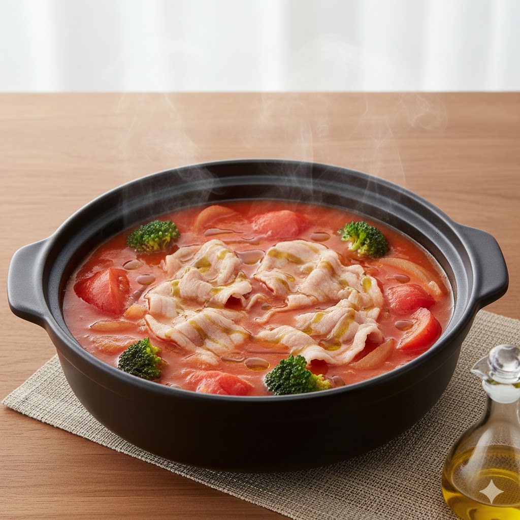 3. 【細胞レベルのリカバリー】豚肉とトマトの「高効率リコピン」和風鍋