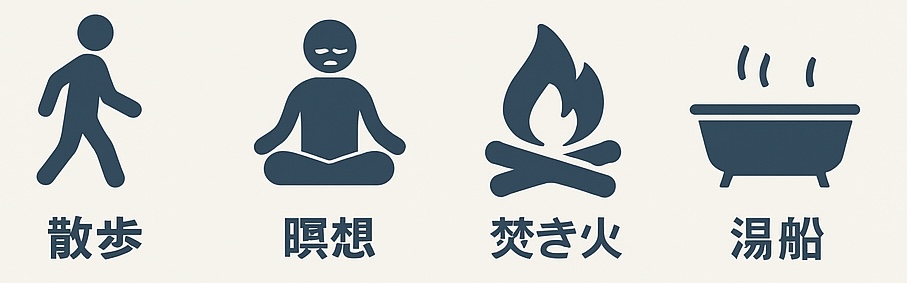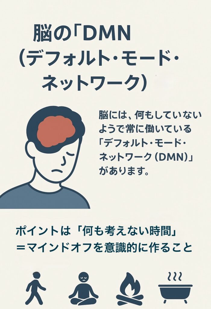 散歩・瞑想・焚き火・湯船──これらはすべてDMNを静める行動です。